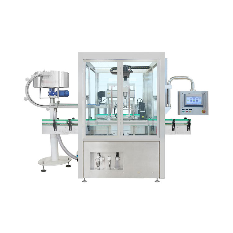 Isantya sokutya kwebhotile, i-rotary cover, ukuhanjiswa kwebhotile, i-cover top kunye ne-capping inokulungiswa kwisikrini sokuthintela ukuthintela ukwenzeka kokulahla ibhotile kunye nokuthintela kunye nokuphucula ukusebenza kakuhle; impahla yekliphu yebhotile iguquguqukayo kwaye ifanelekile kwiimilo ezininzi zeebhotile, eziphelisa umcimbi webhotile eyonakalisiweyo kunye nokulimala kwebhotile; isixhobo sesikhokelo somatshini esinentsebenzo ephezulu kunye nokuthembeka siqinisekisa ukungena kwe-lid egudileyo kunye nokukhuhla ngobumnene, kwaye iqinisekisa ukuchaneka kokuthatha kunye nokubeka isiciko.